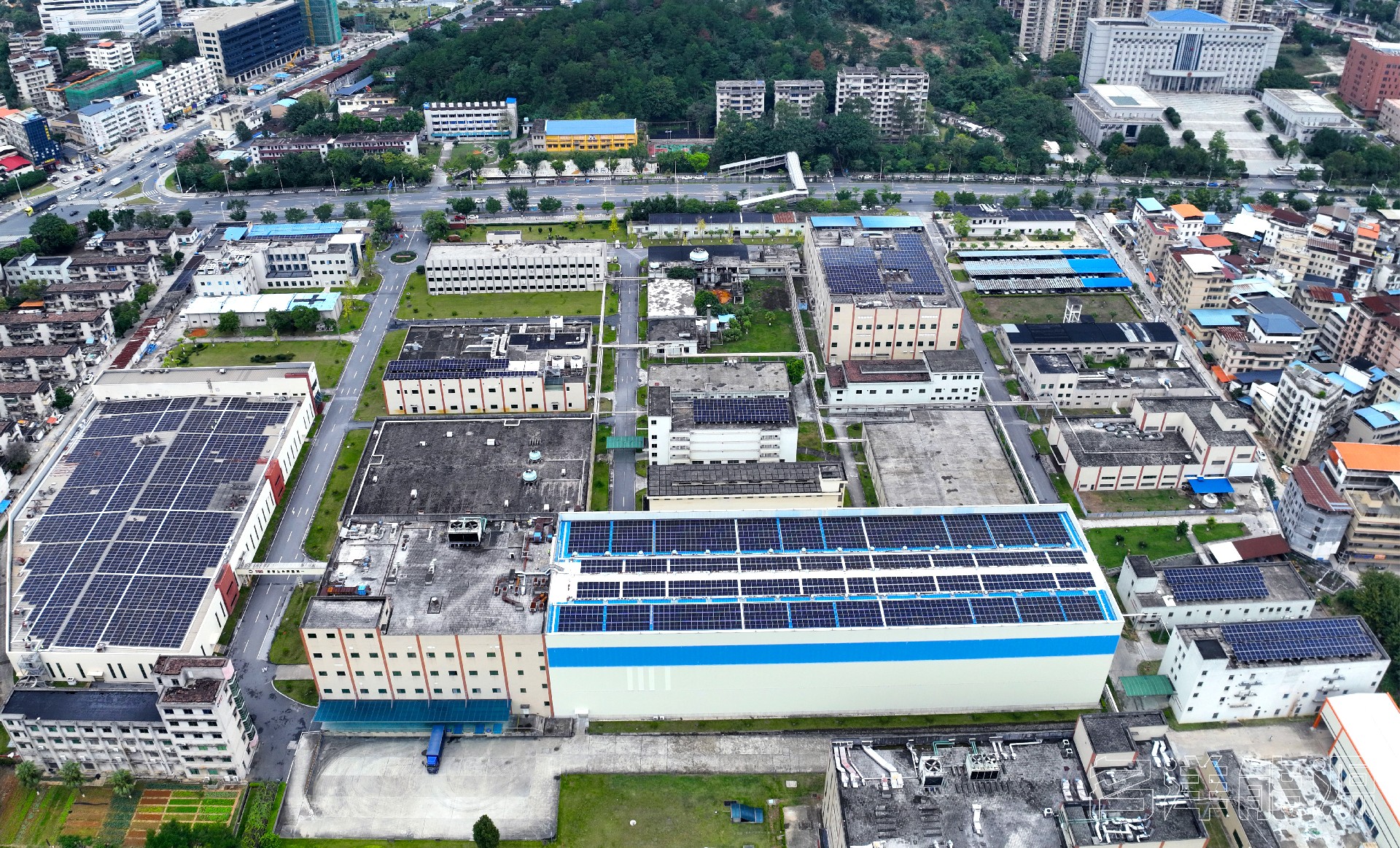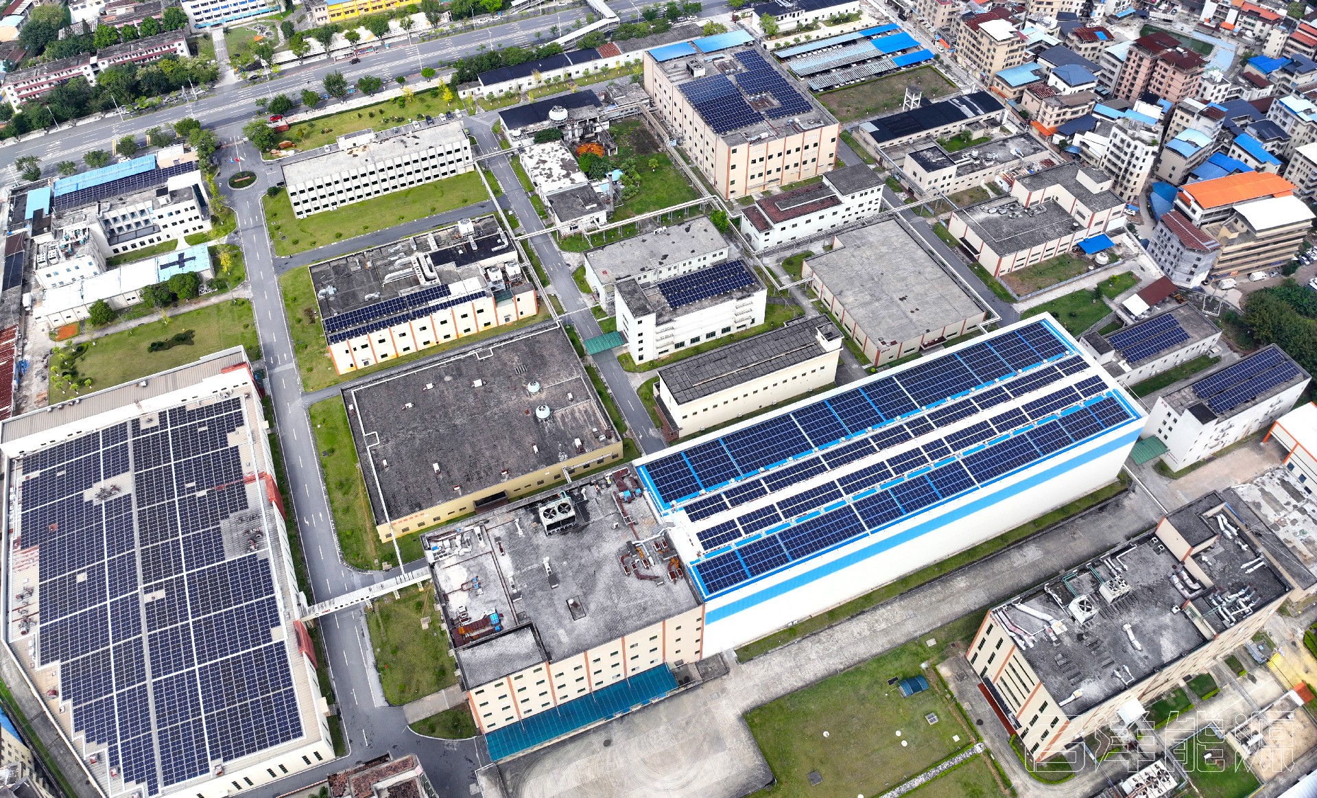 丽珠集团利民制药厂屋顶分布式光伏发电项目位于广东省韶关市,项目在混凝土屋面和彩钢瓦屋面上共计安装957块550Wp单晶硅组件和2810块555Wp单晶硅组件,总装机容量2085.90kWp,项目采用0.4kV低压并网。