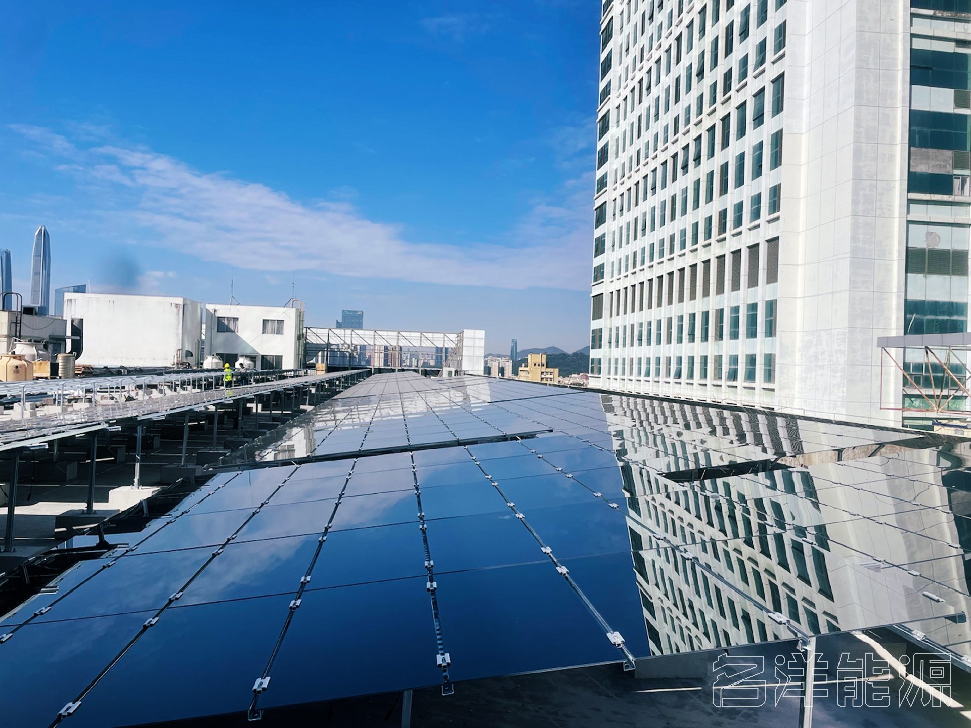 深圳赛格科技园屋顶分布式光伏发电系统安装项目位于位于深圳市福田区赛格科技园内,项目在混凝土屋面安装11142块105W的碲化镉组件、42块550W单晶硅组件、46块430W薄膜组件,总装机容量1.21279MW,有倾斜角安装、平铺无角度安装、垂直幕墙安装多种安装方式,项目采用0.4kV低压多点并网方式,自发自用、余电上网。