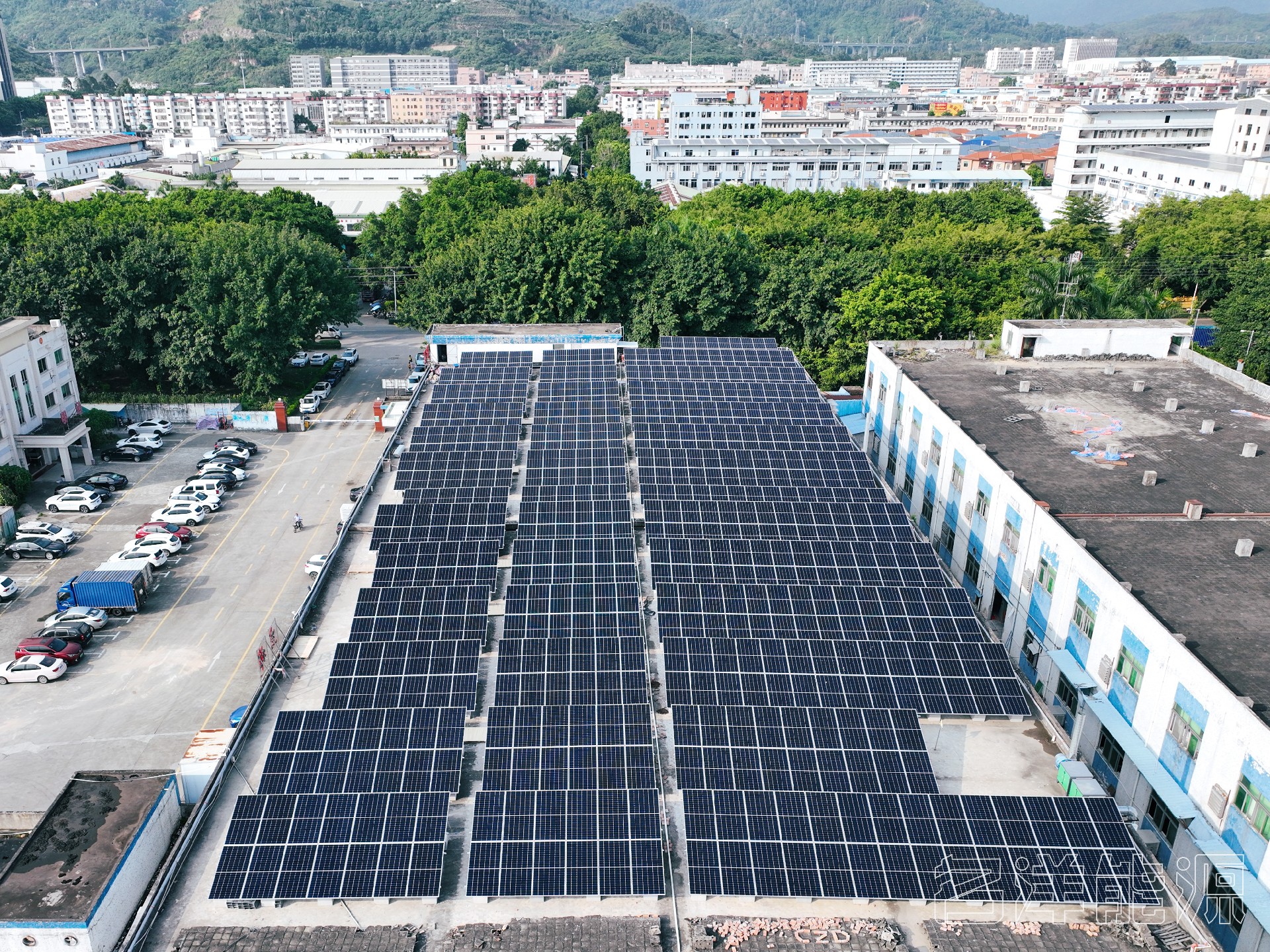 东莞市清溪镇长山头村康怡路180号厂房光伏发电项目位于广东省东莞市清溪镇长山头村,项目在混凝土屋面安装814块550Wp单晶硅组件,总装机容量0.4477MW,采用集中发电0.4kV低压多点并网,自发自用、余电上网。