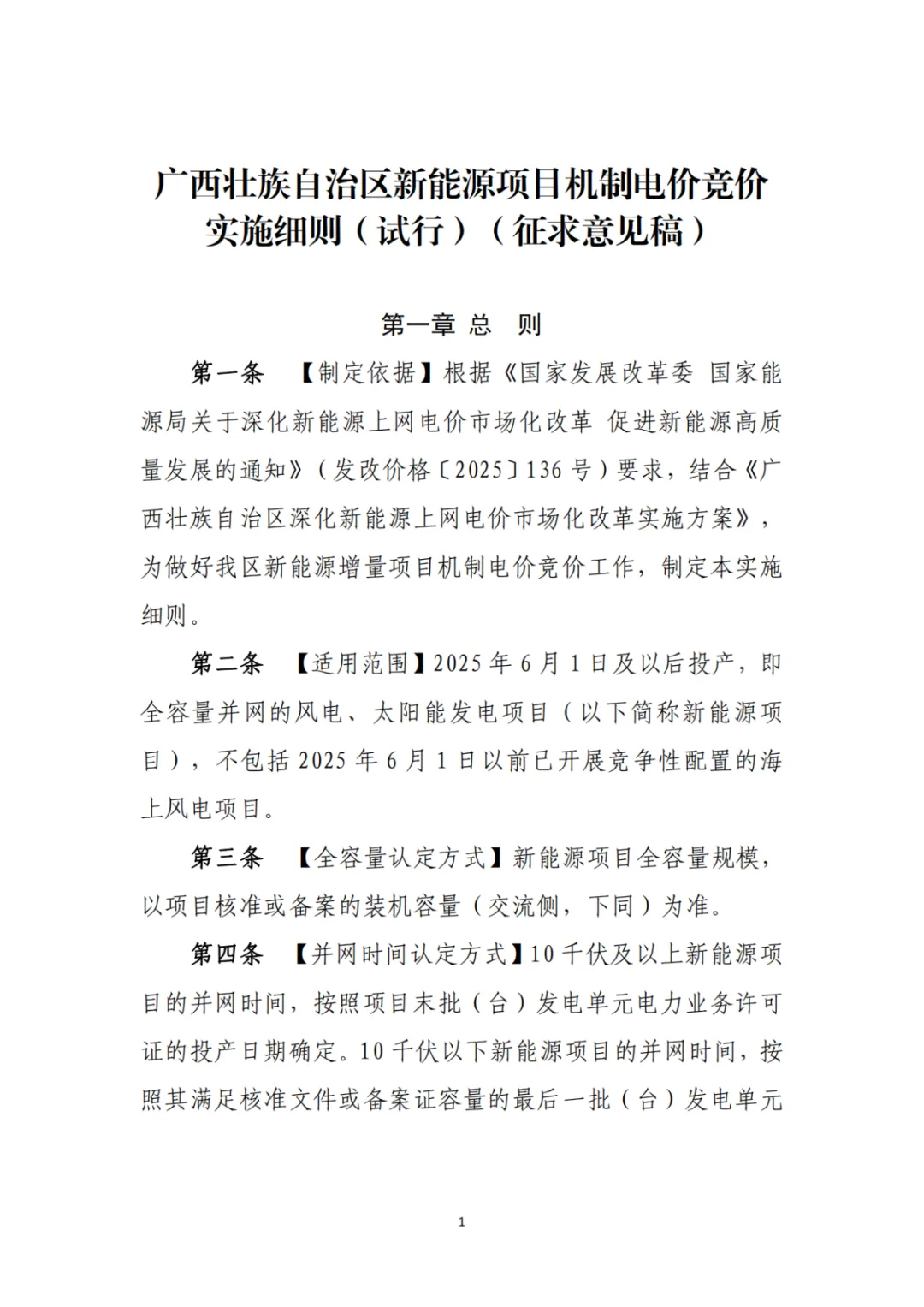 根据11月6日广西下发的《广西壮族自治区深化新能源上网电价市场化改革实施方案》公开征求意见的公告,明确首次增量新能源项目竞价上限暂定为0.36元/kWh,竞价下限暂定为0.131元/kWh。