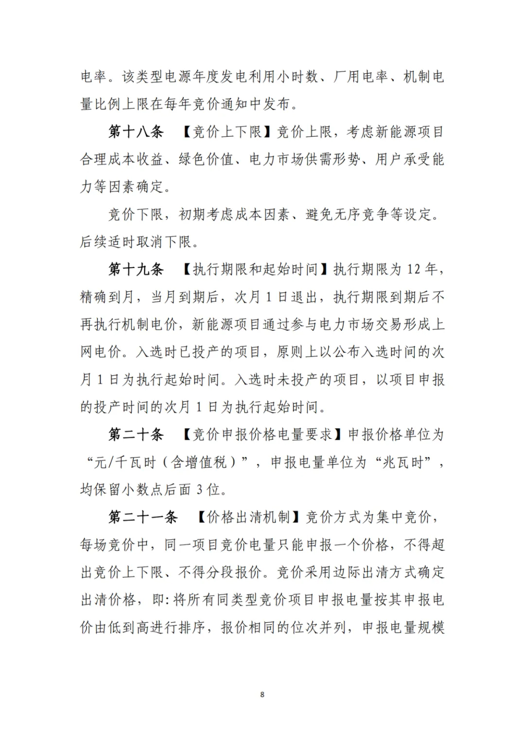 原则上按照光伏、海上风电、其他风电等技术类型分别设置机制电量规模、分别组织竞价。
