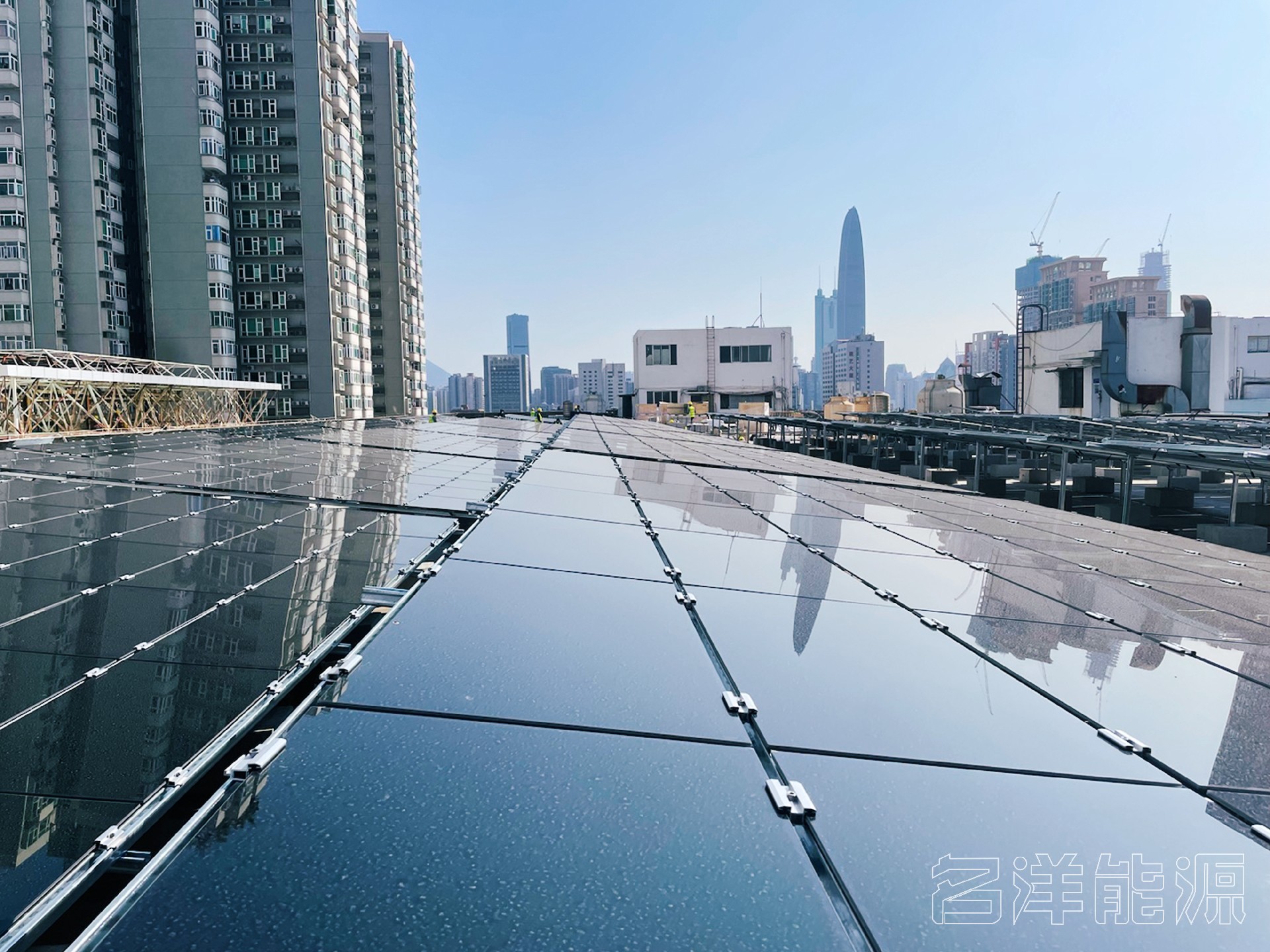 深圳赛格科技园屋顶分布式光伏发电系统安装项目位于位于深圳市福田区赛格科技园内,项目在混凝土屋面安装11142块105W的碲化镉组件、42块550W单晶硅组件、46块430W薄膜组件,总装机容量1.21279MW,有倾斜角安装、平铺无角度安装、垂直幕墙安装多种安装方式,项目采用0.4kV低压多点并网方式,自发自用、余电上网。