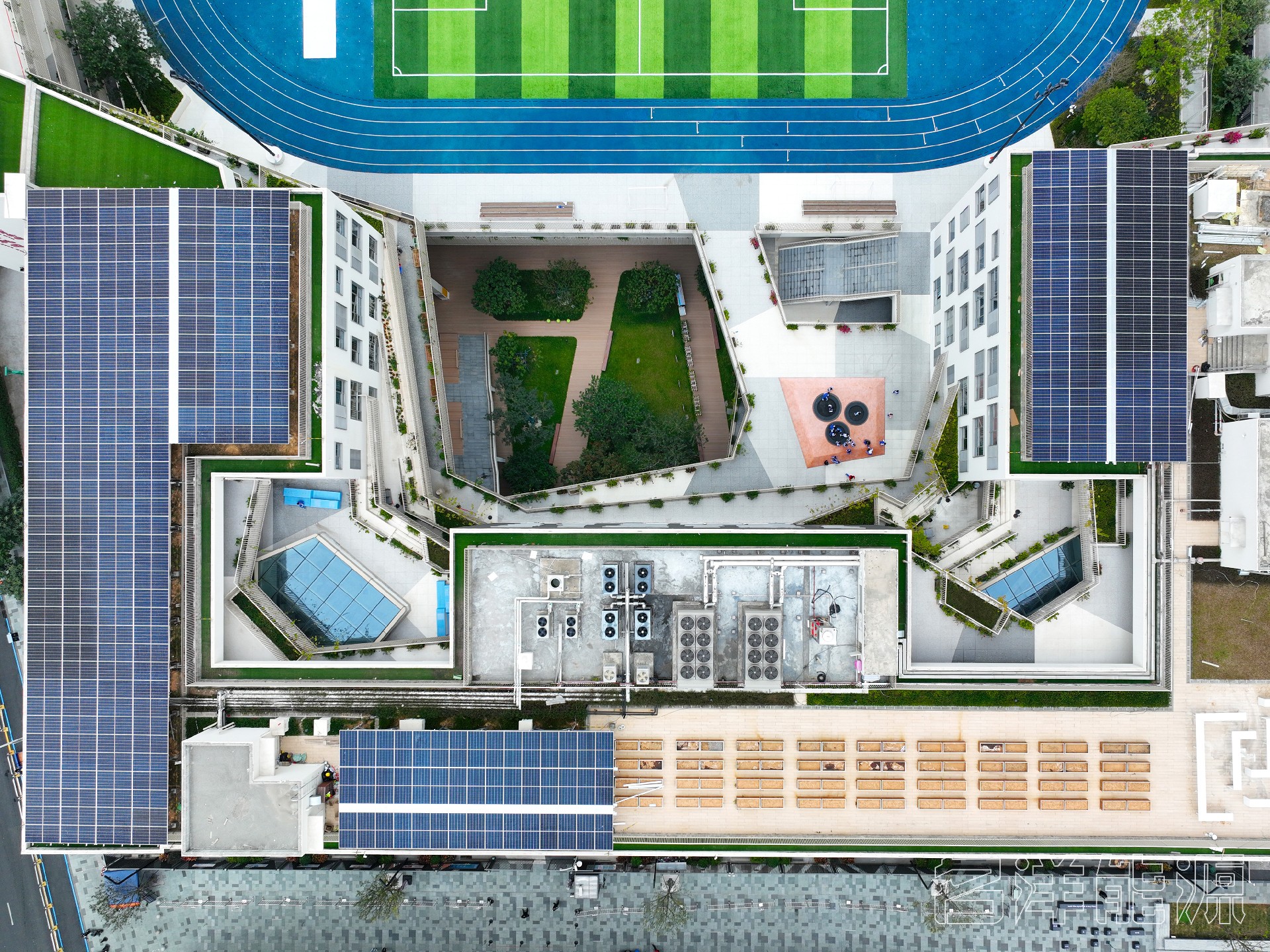 罗湖区学校屋顶分布式光伏发电项目(第二批)(翠园实验、水田小学、仙桐实验、桃园小学)位于深圳市罗湖区,项目在仙桐实验学校混凝土屋面安装40块560Wp单晶硅组件,在水田小学混凝土屋面安装125块555Wp单晶硅组件,在翠园实验混凝土屋面安装299块560Wp单晶硅组件,在桃园小学混凝土屋面安装238块560Wp单晶硅组件,总装机容量390.095KW,采用集中发电0.4kV低压多点并网,自发自用、余电上网。